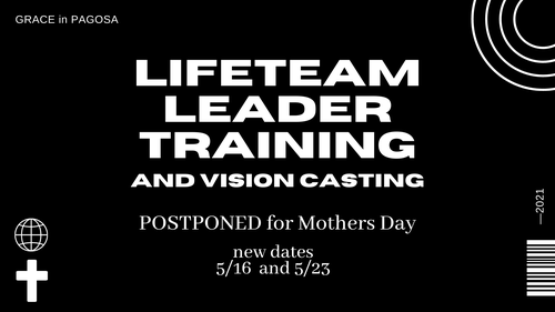 This upcoming Sunday (May 16) we will be having our second lifeteam leader training and vision casting at 11:00 at Restoration Fellowship. Don’t worry if you missed the first one, you can still attend the second one.